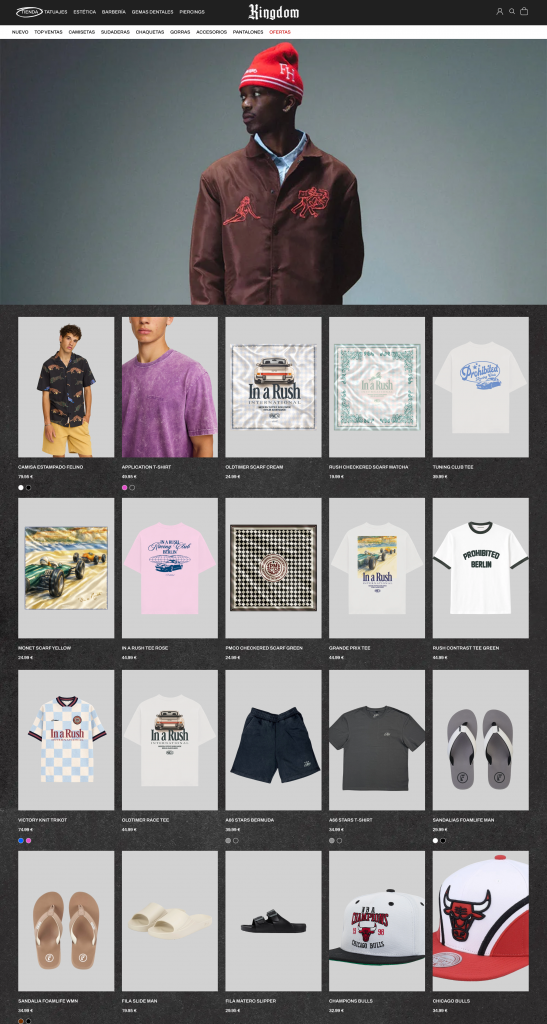 Se desarrolló la tienda online desde cero, transformando la marca Kingdom en un entorno digital capaz de combinar impacto visual y rendimiento comercial.